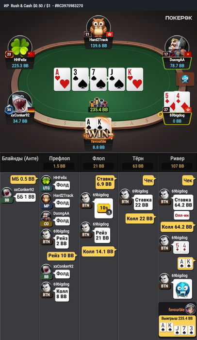 Здесь агрессивный любитель. Кажется очень страшный ривер. Но он мог так КД, ДТ, флешдро какие то сыграть. Я знал что он агрессивный для этого и чекал терн чтобы ловить блефы. По итогу он меня поймал.