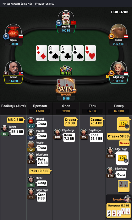 Считаю все заслуженно, на стек блефовал против многих регов где думал что будет оверфолд в итоге вскрывали чуть ли не на средней паре, где вельюбетил получал легкие фолды классика жанра.