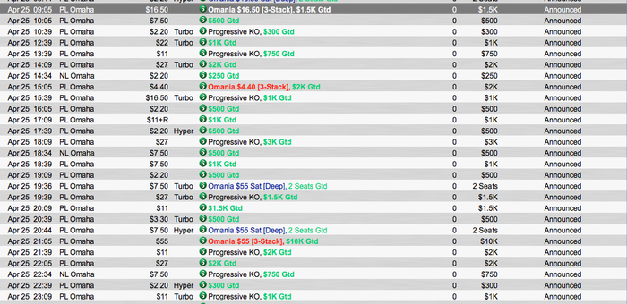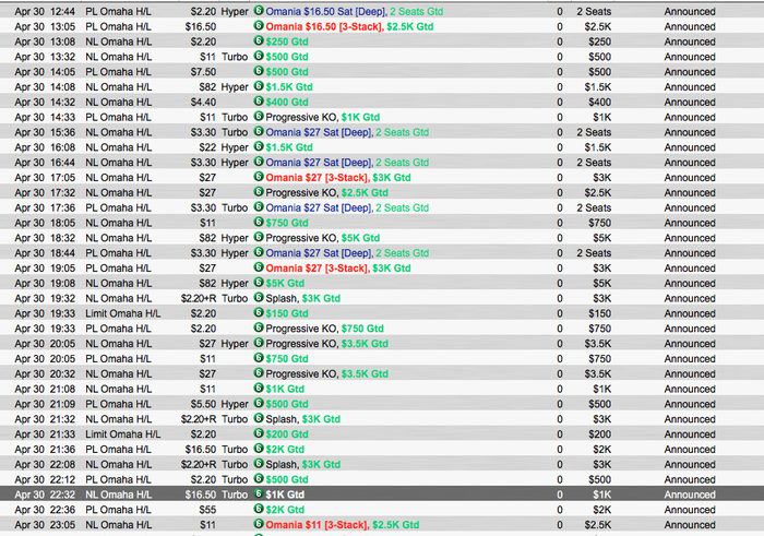 2) омаха хай. добавили турнир за 1к в вс, убрали в понедельник за 500. Точнее махнули его с хайлой и снизили бай-ин до 320. В регулярной сетке ноки убрали и все 9 максы. В 9 максах можно было иметь фантастический рои. Нок воскресный оставили.