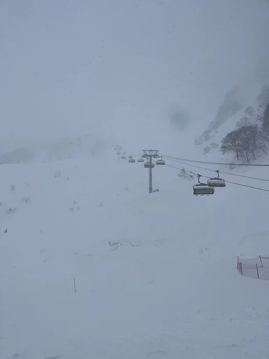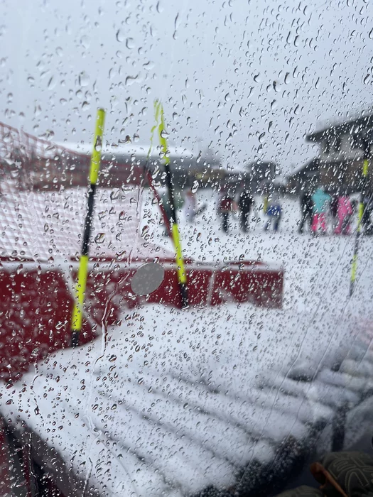 Вверху половина подьемников , в том числе и самые верхние, была закрыта - "лавинная опасность". А там, где все работало, шел тот же дождь...ну или снегодождь.