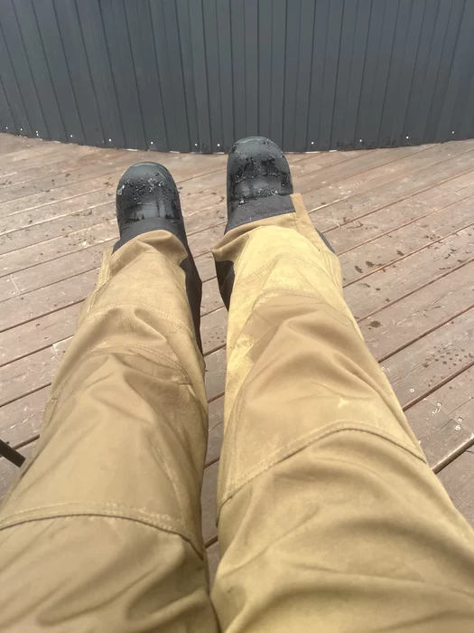 Смотрю на брюки и вижу, что они вдрызг промокли. А ведь это - специальные непрмокающие брюки