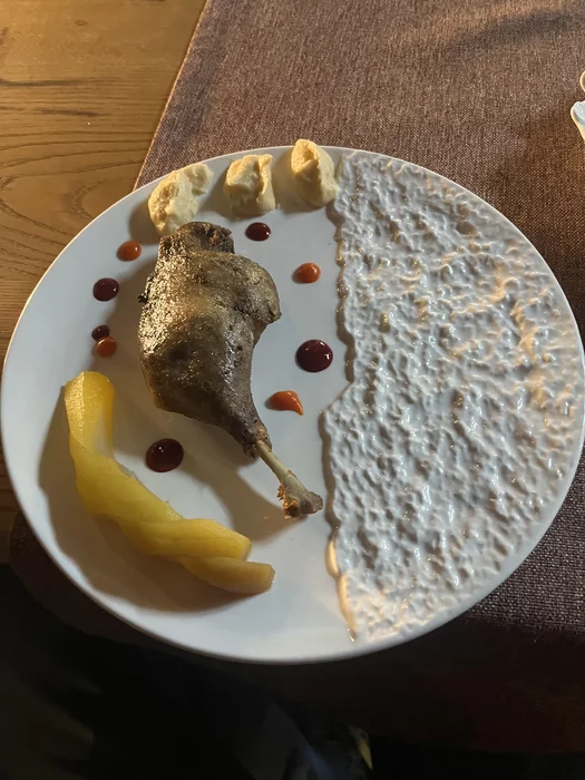 А это - Утиная ножка с грушей и какими-то фенечками. Вкусно.
