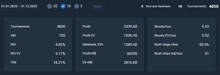 По покеру, плюсанул наверное около 4к за год, играя в среднем 1,5 часа в день. Проблема в том, что без рейкбека и лидерборда рояли катать сложно, но как есть. Планов особенно нет, не хватает времени учиться и зубрить чарты. За обучение рассчитаюсь точно, а там посмотрю какие будут приоритеты, но хотелось бы что-то играть в любом случае.
