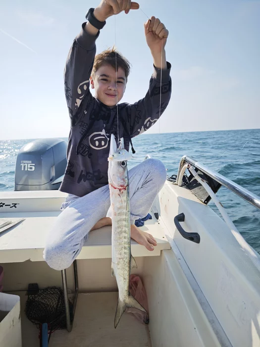 С сыном ездили на рыбалку. Цена была как на два дня лодку в Джакарте взять, а капитан как обычно не особо парился, дал нам спиннинги дубовые для троллинга чтоб на них писюнов с ладошку таскать. Благо, папка уже эксперт в юва рыбалке, настроил снасть покрепче и после нескольких откусанных крючков и сходов, вытянули таки барракуду. Сын доволен, я тоже