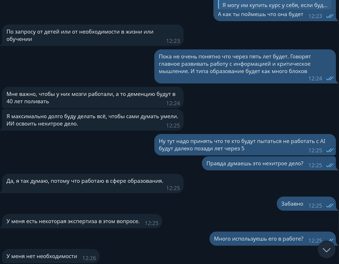 Пытался обсудить с бывшей женой вопрос, как и обучать ли вообще детей сейчас AI