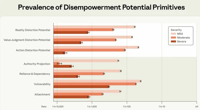Учёные из Anthropic и University of Toronto проанализировали (https://arxiv.org/pdf/2601.19062) почти 1,5 миллионов диалогов с ИИ и выяснили: примерно один из 1300 разговоров приводит к искажению восприятия реальности, а один из 6 тысяч — к опасным действиям.