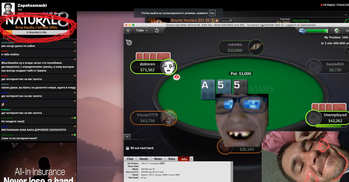 По поводу ЗапахаЗамазки. Меня иногда коробит от его формулировок, хотя я давно к ним привыкла. Я как то работала в кулцентре техподдержки Билайна ( был такой момент ) интернет и тв, и чего я только не наслушалась в свой адрес, как правило в 99% от мужчин, и зачастую не всегда пьяных, на тему "кто я и что я". При этом трубку вешать нельзя, по крайней мере длительное время. Это специфика работы. Иметь мало мальскую публичность в интернете и не быть готовым к подобному, а еще при этом обижаться и реагировать на это, придавать этому мало мальское серьезное значение - идиотизм Саш. Любая деятельность подобного рода имеет данную специфику. По поводу фонда борьбы с ботами. Это рофл Саш. Он мог написать что угодно там. На новую квартиру, на новый БМВ, на покупку самого крутого покерного подсказчика, чтобы наконец то начать доезжать в дорогих. Что угодно. Пойми, ему донатит именно ЕГО зритель. Зритель Джипси или БебиШарка этого делать не будет. Зритель Рената искренне за него переживает и искренне его поддерживает. Он разный. Если посмотреть на происходящий там "дурдом", то можно придти к выводу что там одна школота и неадекваты. Это крайне ошибочный вывод. Там по большей части взрослый зритель. Бывает весьма обеспеченный зритель. Который может проплатить очередной контент. Например очередной марафон. Простимулировать на него. Он и не скрывает того, что он хочет чтобы его стримерство максимально монетизировалось. Это его работа. А что в этом дурного? Насильно же он не заставит зрителя. Зритель сам подписывается, сам донатит, заказывает платную музыку. ЗапахЗамазки самый народный сейчас покерный стример. Это просто факт. Разумеется в рамках русскоговорящего твича. Его искренне любят. А то что он у "вас" вызывает отвращение, ну так в этом тоже нет ничего криминального. Просто данность и не более того.