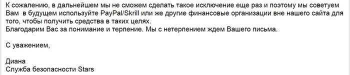 Я это к тому, что может ТСу сделать стрим (при этом не обязательно что-то говорить, если стесняется, может просто музычку какую нибудь включить с чёрным экраном, например), желающие донатят кому как удобно (скрилы, киви, сберы и т п) а потом ТС эти донаты вывдит к себе на плятёжку, которая ему удобна.