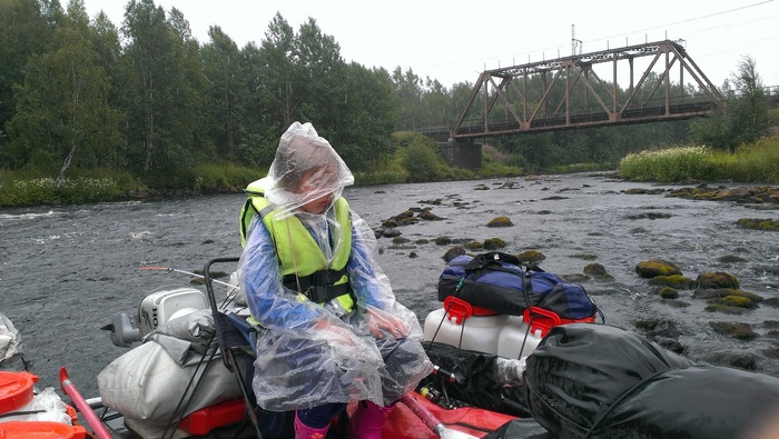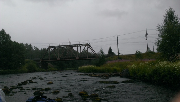 Добрались до поселка . но не было места где сойти на берег. В поселке река просто вся в камнях , так что метров 500 практически тащили катамаран, воды хоть и мало , но она довольно быстрая . На тягались в общем жестко в один момент в обще неприятность произошла хорошо получилось быстро справиться , тянем катамаран я иду почти по центру реки и уходит нога между камней и застревает. а вторая сторона дает рывок и в какой-то момент пришлось одновременно и вытаскивать ногу и не дать весь вес катамарана перевести на голень. В общем не приятно было , но успел боком вытащить ногу . Перед берегом тоже большой мост и течение утягивает пришлось быстро загребать чтобы не унесло течение дальше. Там как раз оставалось всего два порога один из них с выходом в море четвертой категории, миниводопад , но мы удачно вышли на берег и начали разгружать и собирать вещи . Еще все усугублялось что погода в этот день сильно испортилась и чем мы ближе были к поселку ливень усиливался в общем жесткие последние 500 метров тащили суднл под ливнем