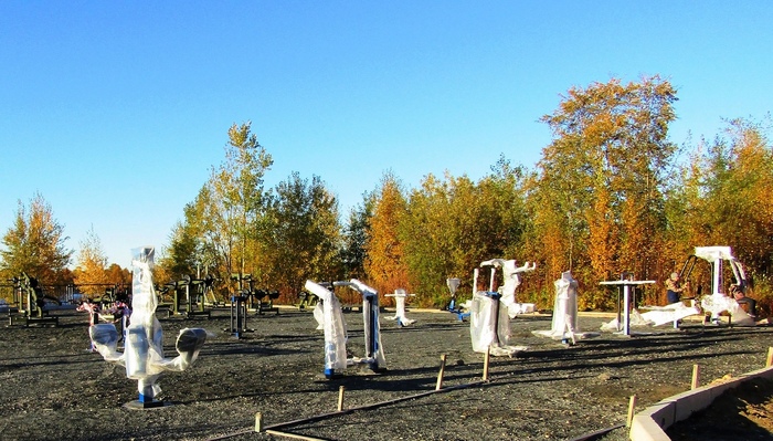 На набережной еще очень крутая площадка с тренажерами