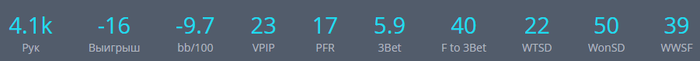 Оппонент - стандартный рег 21/17/4.5 3-Bet BBvs SB 7 Cbet 3BP F 100(6) T 60(5) WTSD/W$SD/WWSF 31/46/41