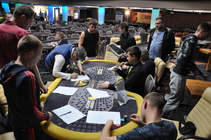 Все "выжившие" во флайте 1Е спортсмены запаковывают свои фишки. Уже через 45 минут они продолжат борьбу в "Комбинированном дне" Khreschatyk Poker Open!