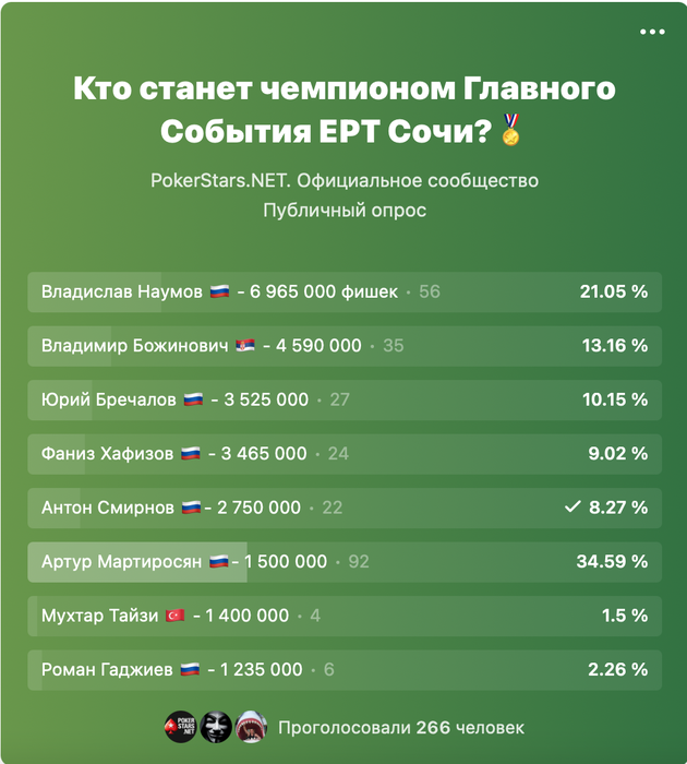 В сообществе PokerStars в ВК тоже верят в Артура Мартиросяна.