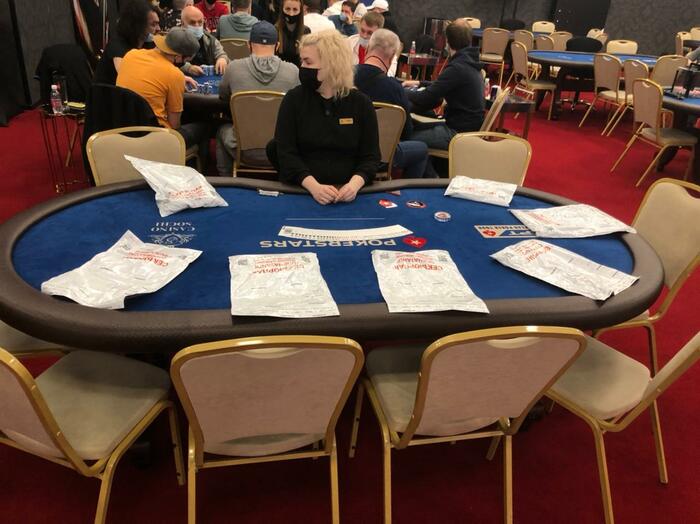 Последняя раздача перед перерывом. Отдыхать пошли все, кроме Мартиросяна, который открыл катофф. И Смирнова, который защитил блайнд.