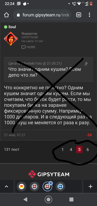 В конце пари из финального баланса вычитается байин, увеличенный на 10% и результат умножается на 100. Если результат положительный, значит указанную сумму проиграл Джипси, если отрицательный, то наоборот. Если 0, значит Генр заработал ровно 10% и это расход.