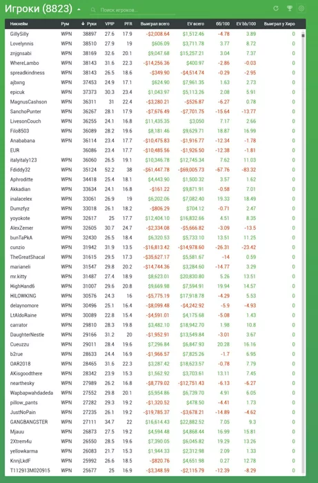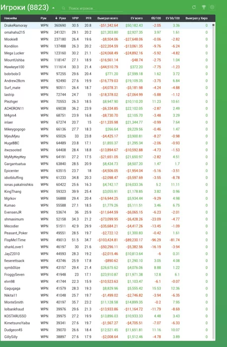 Парни, подскажите что я не так считаю или не так понимаю. Скачал за год майнинг Покеркинга пло100-пло1000. Думаю, посмотрю у кого какие результаты. И смотрю, что у большей части пула - конский недобор. Ну думаю может не вижу всей картины целиком. Сделал для чата ГПТ скрины столбцов ЕВ и факта с первых двух страниц майнинга (можно больше, но смысла нет, там уже не так много катающие реги и судя по тому что вижу, картина еще будет усугубляться). По идее на большой выборке ЕВ и факт должны быть плюс минус похожи. Но так не выходит - разрыв конский.