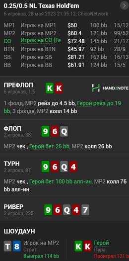 на поляне с рейком 15-16 бб/100 у тебя даже с фишом 50 впип+, который с трудом покроет тебе рейк, сыграно всего лишь жалких 34% рук. ну и не везло, конечно, да. Только на старзах в таком же ране был бы ВР +3бб