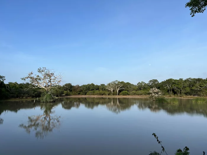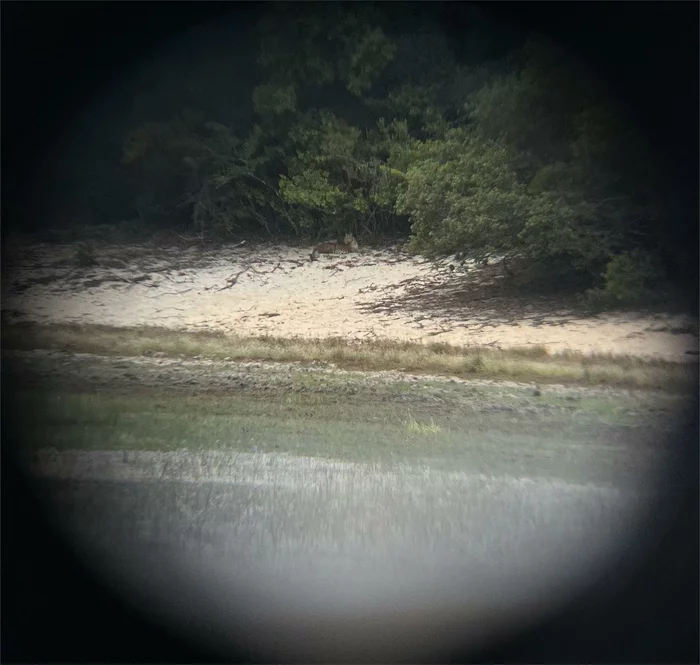 На второй точке наблюдения за леопардом мы провели больше времени. Часа 2-3. И хищник был поближе, и обзор на озеро был пошире. Сначала казалось, что все это бесполезно. Мол, котик просто поспит и уйдет. Возможно, у него и вправду были такие планы, но на водоеме закрутился сюжет.