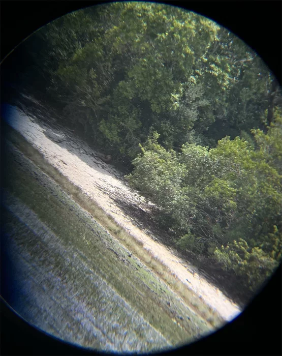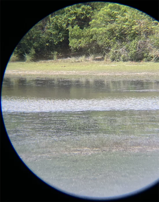 В какой-то момент стало заметно движение крокодила к оленю. Медленно-медленно он сокращал дистанцию. Разглядеть его на поверхности дрожащей воды было сложно, поэтому иногда казалось, что мы всё выдумали, а в озере просто плавает причудливая палка. Крокодил приближался, но олень по счастливой случайности беззаботно отшагивал от него. А вот птицы постепенно становились всё тревожнее. Когда до жертвы осталось 3-4 метра, хищник застыл. Вместе с ним будто бы застыло всё, даже вода.