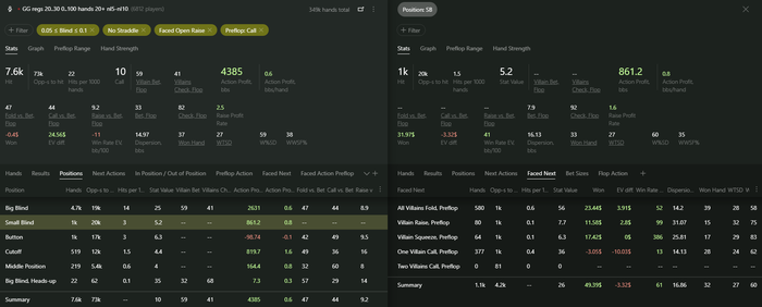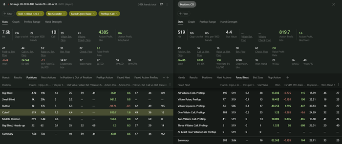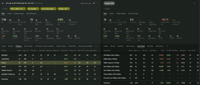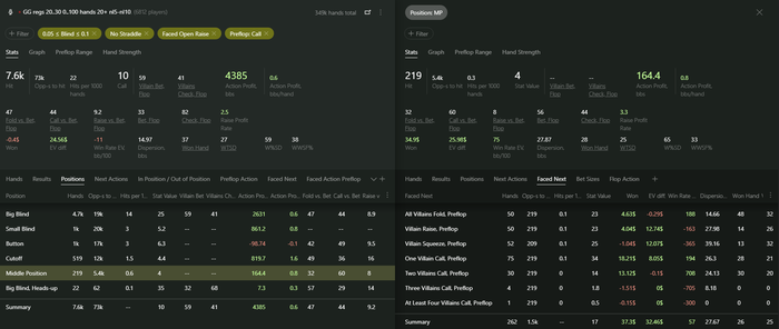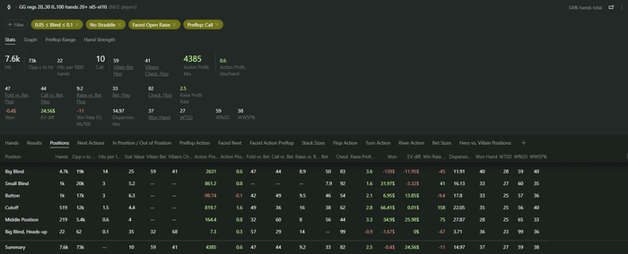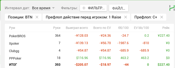 Выборка пока очень маленькая для серьезного анализа, но со всех 3 позиций (катоф, баттон, сб) пока что плюсовая. Abaddon70, посмотри в стате колд-колл по позициям, может где-то есть большие просадки или крохотный плюс, в таком случае думаю можно будет отказаться от колд-колла с конкретной позиции.