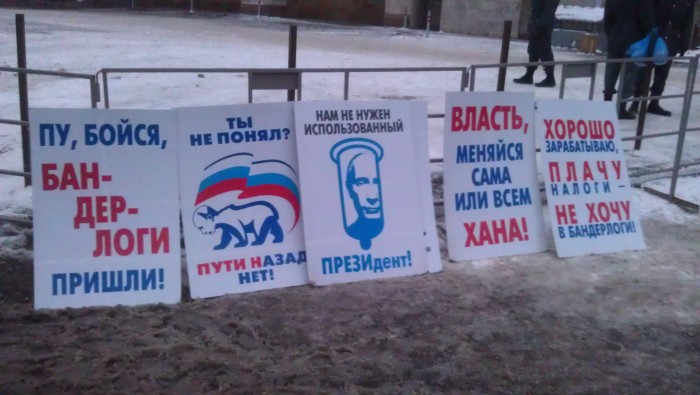 На самом деле мелькало очень много интересных и креативных плакатов, просто я не успевал их фотографировать. Запомнились: "Если вы не можете отличить презерватив от белой ленты - мне вас жаль!", " Пуу, уползай из кремля", "Россия, хватит кормить питона" (с рисунком питона с головой путина, который проглотил деньги), много плакатов, обыгрывающих тему, что митингующие не получают денег от США и т.п. ...