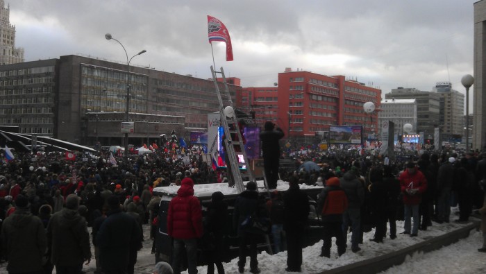 4) Хорошая слышимость выступающих. заметно, что организаторы извлекли уроки из митинга на Болотной. Слышимость была отличной, наверное этому ещё способствовали акустические возможности проспекта. Ораторов было слышно ещё к подходу к Сахарова, причем слышно было громко и четко, правда не всегда было понятно, кто выступает, периодически забывали представить и представиться. От самих ораторов впечатления неоднозначные. Можно сказать, что на данный момент у недовольных есть только один лидер, который имеет реальную и всеобщую поддержку и кредит доверия это конечно Навальный. Все остальные так называемые лидеры оппозиции дискредитировали себя давно и то как на них реагировали (всех нещадно засвистали)) показывает низкий уровень доверия к ним, исключениями могут служить, пожалуй только Немцов и Рыжков и то с большой натяжкой.