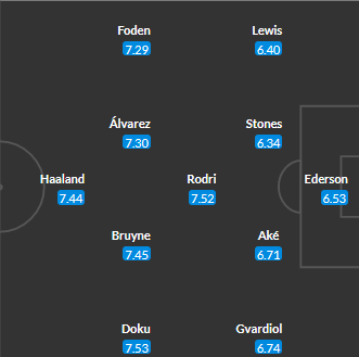 Вингеры - Фоден (8.0), Доку (6.5), Бернарду (6.5), Грилиш (7.2).