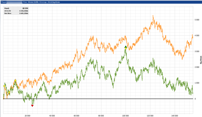 Вот так я уничтожаю нл10, ин зыс йеар. Почти сорок баинов блять, СОРОК КАРЛ!!!!Да у меня банкролл меньше, чем недобор. Понятно дело, что и по ЕВ винрейт говно. Но как говориться, не переездами едиными, ебет покерстарс. Я не попадаю, ни в одну доску, мне не закрывается, ни одно ссаное дро. А все что нужно сделать оппоненту, зайдя со мной в раздачу - это просто попасть в 5ю пару, тащить её до ривера и она обязательно превратится в натс.