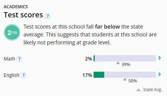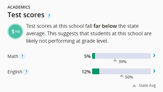 Вот, к примеру, средняя школа в Оклэнде на 500+ учеников (одна из худших гос школ, что я тыкнула рандомно), выдает такие результаты: