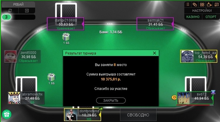 Касаемо кол АК и в случае, когда не попал в доску - выкидываем, возможно правда этом есть, но конкретно в моем случае это не помогло бы, так как там сразу открылось флешдро и стрит в дыру.. Так что концовка была предрешена.