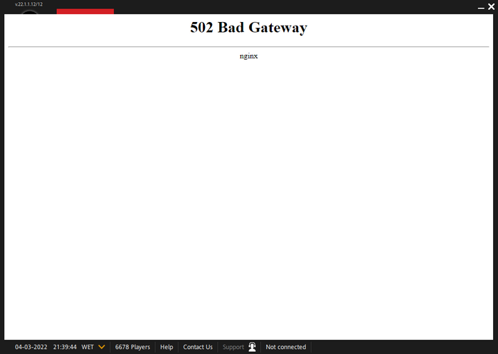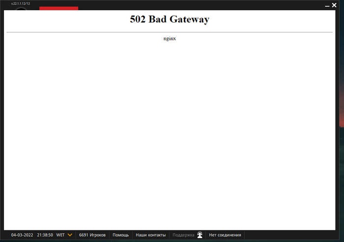 Та же история, предбабл турнира и не войти... Меня сегодня уже раз 5 выкидывало из клиента, но всегда помогала перезагрузка , в последнем же вылете аналогичное белое окно. Пусть компенсируют , уже в который раз сталкиваюсь с подобными проблемами , но они видимо не спешат её решать.