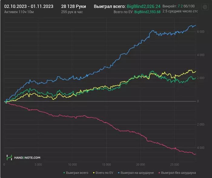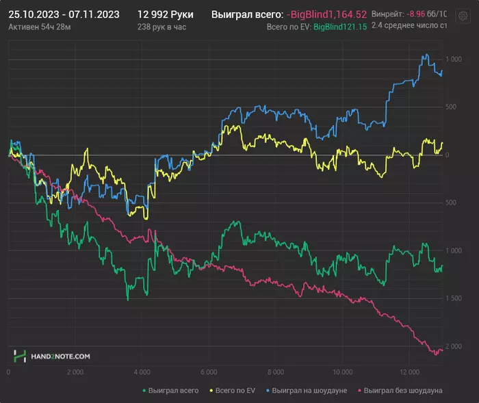 Стал больше играть нл100-200 , по ЕВ иду +8.2/100