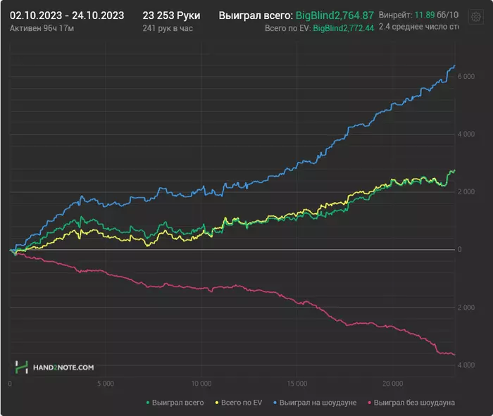 Не все руки трекаются , сыграл 45к+ рук , иду +8евбб/100