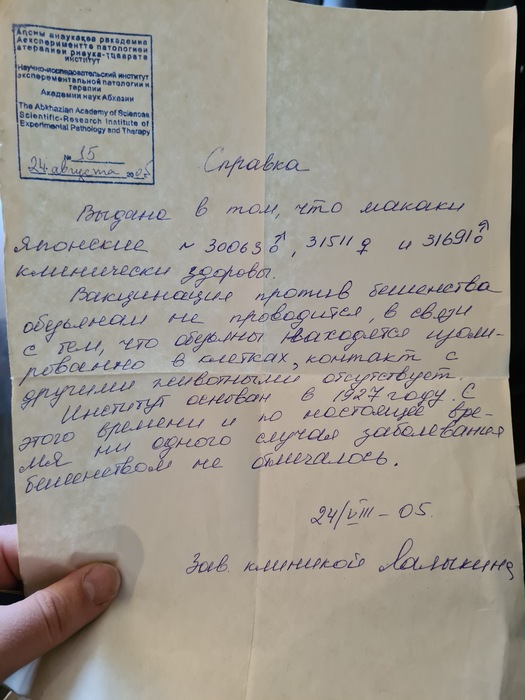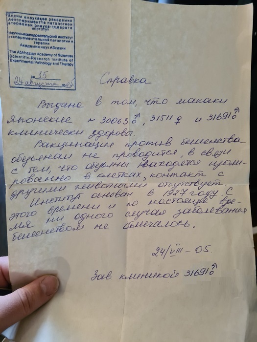 iYeti @ 21.04.21Anar-RU, История прояснилась: 16 лет назад моя сестра была в Сухумском зоопарке, где ее укусила обезьяна. И моя мама, юрист по профессии, затребовала такой документ.