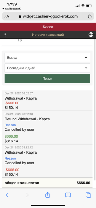 nikita_ekb @ 24.12.2020 Здравствуйте! Столкнулся недавно с проблемой, а именно с тем, что при выводе средств мои деньги ушли на абсолютно неизвестную мне карту. Я создал заявку на вывод средств на мою карту, с которой всегда(!) пополнял и выводил денежные средства. Спустя сутки мою заявку одобрили(как оказалось не мою) и на почту пришло уведомление о выводе, однако деньги на карту так и не пришли. Я зашел в историю транзакций и увидел, что с моего аккаунта была отменена моя заявка и создана новая на другую карту, к которой я никакого отношения не имею - подтверждена моментально , вывод одобрен(скрин прилагаю). Пароль не изменен, остаток средств на счете остался. Я в глубоком удивлении и шоке. Служба безопасности моим вопросом занимается, но ответа пока нет. Я хотел бы найти решение проблемы у Вас и придать огласке этой истории. Аккаунт у меня один, документы верифицированы, правил не нарушал никогда. Спасибо!