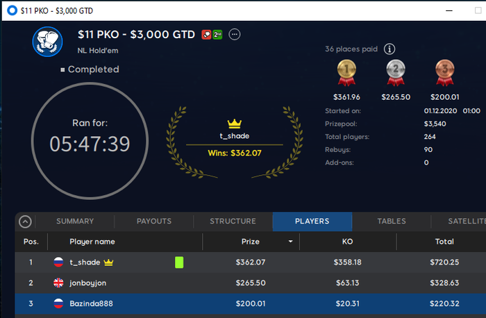 Самый большой занос. Весь турнир плелся в конце, на финалки отлично сложились 3 ключевые раздачи, удалось в хедз-аппе дожать. Безумно рад, давно не занимал первые места.