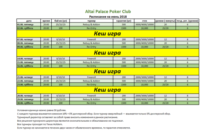 В минувшие выходные в покерном клубе Altai Palace прошли следующие собития :