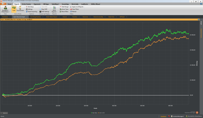 Не написать о плохих результатах месяца будет не честно, по отношению к читателям и самому себе. С момента написанного поста https://forum.gipsyteam.ru/index.php?viewtopic=144607&view=findpost&p=6170541 справился только с задачей по количеству отыгранных рук Складывалось очень плохо с самого начала месяца, хотя и прошлый месяц тоже по EV недобрал. Ну да ладно, главное, не в минус Хотя столь маленький плюс, заставил тронуть неприкасаемое- БР, с которого я ущипнул еще пару соток. Продолжать играть на PLO10 уже не могу, придется восстанавливать БР. Кстати решил обнулить базу данных, перед новыми цифрами, покажу еще раз старые. Если увидите на самом дне, не проходите мимо, можно и поколить со вторым или третьим натсом