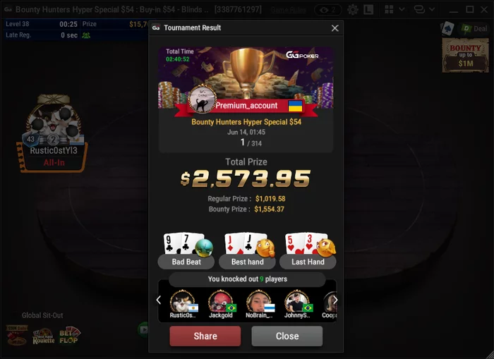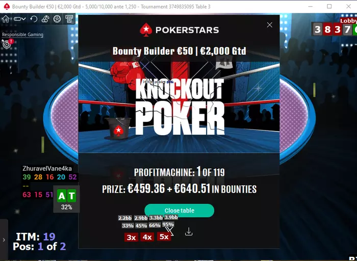 Пошла вода горячая, отмазал 4к мейк🤩 Бест кэш подъехал. В топ 1000 проиграл флип, осталось 9бб, но как обычно выигрываются турниры)))👻👻👻👻
