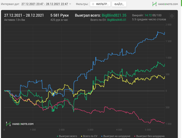 Показал крупные раздачи Юры, Юра подтвердил меня просто фиши трахнули, короче не тильтанул пережил день достойно. Пообщались с Юрой, вроде ничего не поменялось пло 500 должен бить, скилл растет, бра хватает. Ну пошел дальше катать те же лимиты и через день я обновил Бест Дэй лол, сегодня комбинашки складывались прям очень хорошо, старался отработать день.