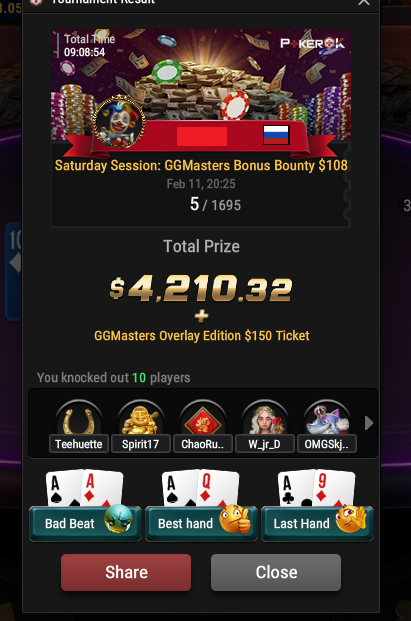 Не открывал ни разу форум и месенджеры до конца последней раздачи, хотя сейчас веду переговоры по одному деловому вопросу. Внимательно катал 6 столов, кайфовал от игры. Если немного заебывался, включал пару треков на ютубе расслабиться. В один из перерывов сходил в душ.
