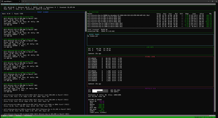 Т.е. задача - а можно ли придумать прибыльную стратегию по крипте на полимаркете, которая не будет использовать моих беливов по битку и будет обоснована на данных?