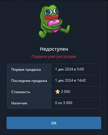 Когда всё началось - насколько я помню первые подарки появились 5 октября 2024 года. Буквально на следующий день 6 октября Дуров сказал, что подарки можно будет конвертировать в NFT в сети блокчейна TON.