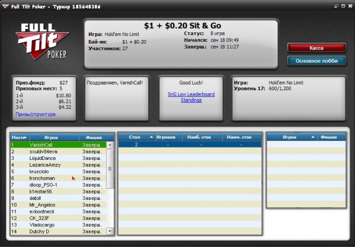 Хех, решил сегодня потренироваться немного перед МиниФтопсом по Омахе Х/Л, читать даже не знал что решил сыграть и на счастье как раз начинался небольшой турик за 3 Ну думаю идеально. В принципе для первого турнира в эту игру результатом я доволен. Но в ХА вышел имея перевес 3к1, но увы в первой же раздаче удвоил оппа и дальше не смог совладать со своей же агрессией. Ну и на МиниФтопс сил уже не осталось, перетренировался немного))