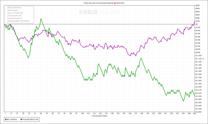 Недавно провёл эксперимент (а то что я сделал - для меня реально эксперимент) - остаток дистанции (10 дней, 1050 спинов) решил играть не поглядывая в график. Это было сильное решение, т.к. я из любителей смотреть в него после каждого стила блайндов, но тут решил проверить как оно скажется на мне) И знаете, я уже как-то собирался так играть и как только получал какой-то стрик из череды кулеров, то сразу же открывал и смотрел что там, а здесь я даже не проявлял желания.