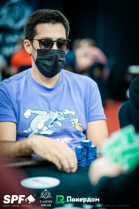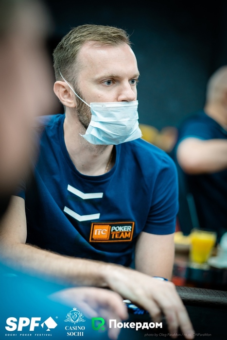 Юрий Кондрат с валетами отскочил против королей Ильдара Мустафина, когда на доске положили общий стрит, но затем с девятками удвоил тузов Эдуарда Акопяна. Осталось пять блайндов.