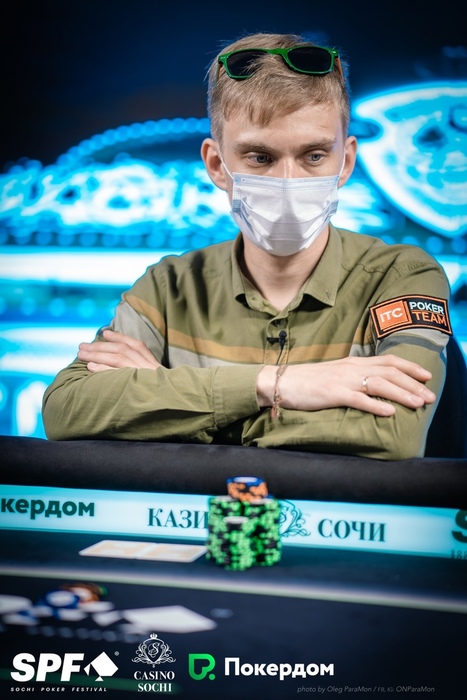 Чиплидер Егор Турубанов запушил с баттона, Гарик Тамасян со вторым стеком 5,2М заколлировал с . Артем Веженков выкинул , так что всего два аута на успех было у Егора, однако...