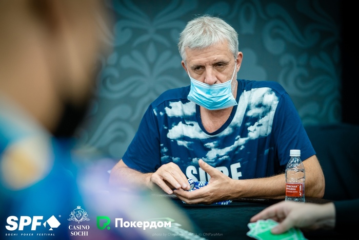 Руслан Зайнуллин запушил 5,5 блайндов с первой позиции на , Александр Сандулов не выкинул на большом блайнде.