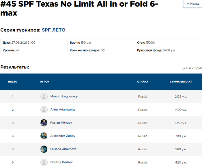 Тёрн . Ривер . Аркадий занял 5-е место (4380 у.е + 300 в баунти).