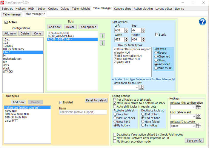 4. Нажимаешь там Add opened - создаются слоты. Порядок слотов далее можно отсортировать при помощи кнопок справа от списка. Включаешь Table manager 2.